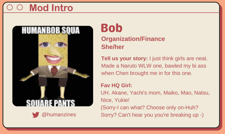 Subverting tropes (i.e. Damsels in Distress, The Chick, etc.) focusing on HQ ladies and their stories in canonverse.Will the zine be digital or physical?